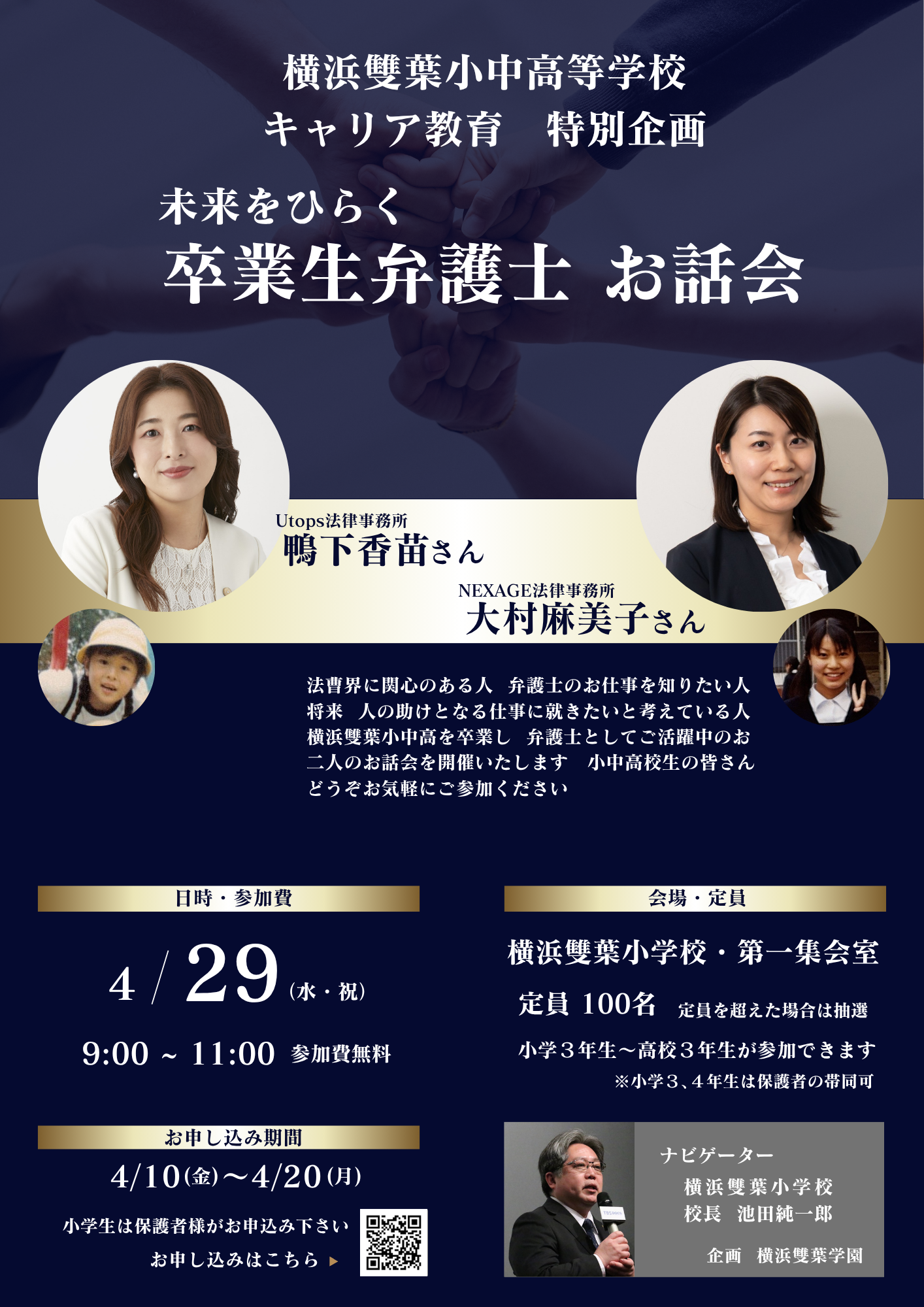 当事務所代表弁護士鴨下香苗が、4月29日に母校の横浜雙葉学園で、同学園のキャリア教育の特別企画でお話をしてまいりました。
