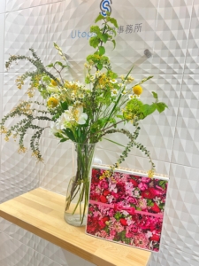 先日同じビルの方から、玄関のお花を見て毎日癒されるとのお声をいただきました。
