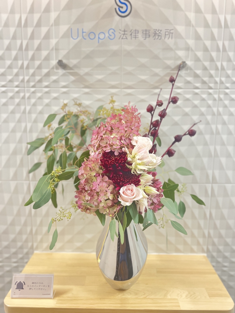 日に日に秋が深まってまいりましたが、ご体調など崩されてないでしょうか。 今週のお花は秋らしいシックな色合いです。アジサイ、セルリア、バラ、ハイビスカスの実、マム、ユーカリです。 お花の更新が久しぶりになってしまいましたが、Utops法律事... -